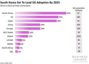 在《全球5G展望报告》中,商业内幕网(Business Insider)指出,美国、韩国和中国这三个国家正在引领5G革命。这份报告汇总了这三个国家的5G概况,每个国家都提供了市场电信空间的概述,并详细说明了是什么因素促成了(或阻碍了)该市场的发展。我们研究了各个地区的著名电信公司,确定了它们推出5G的努力,并讨论了每家公司的机遇。